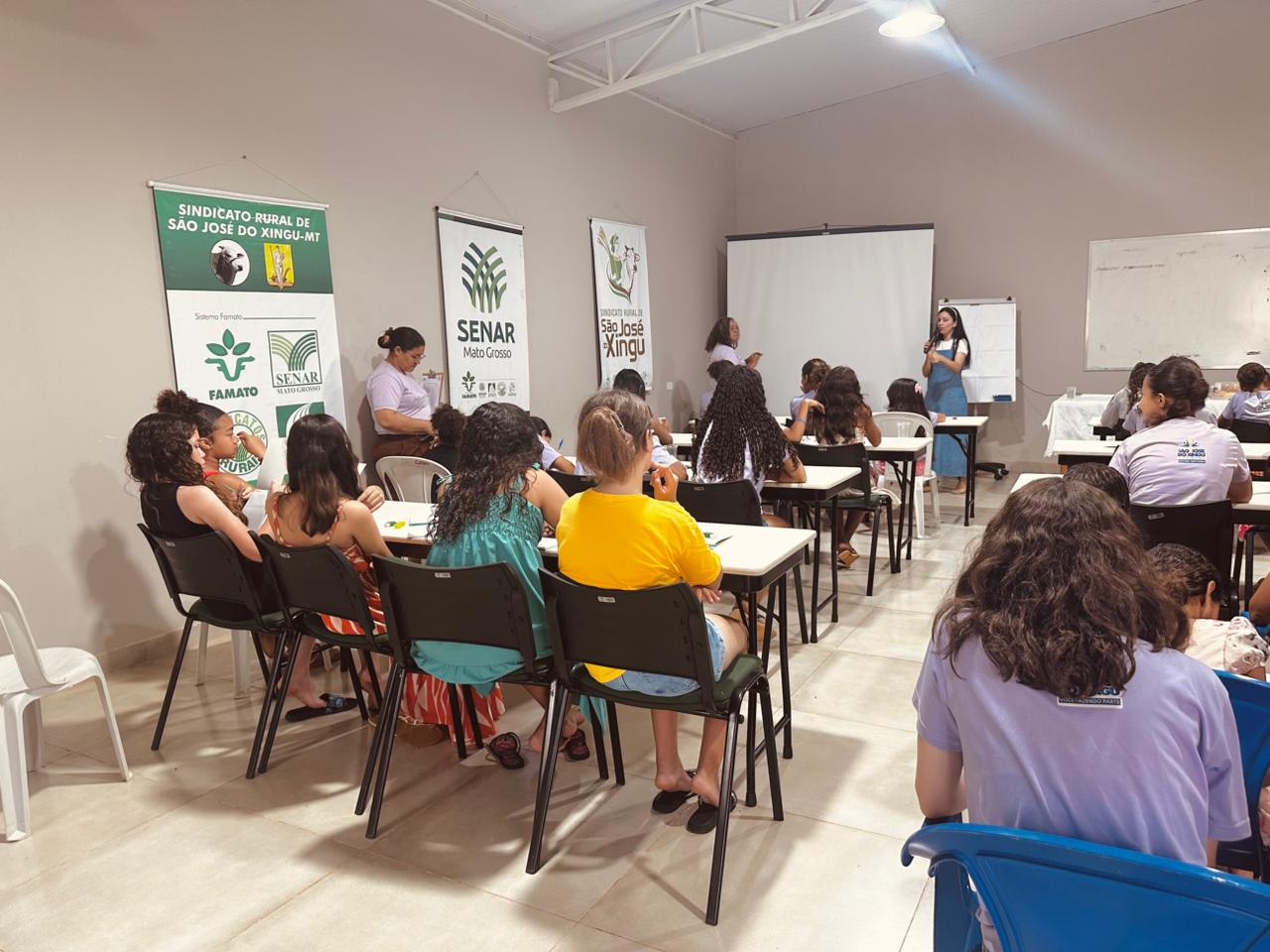 Alunas do projeto Menina Moça participam de aula sobre etiqueta, boas maneiras e mesa posta no Distrito Santo Antônio do Fontoura