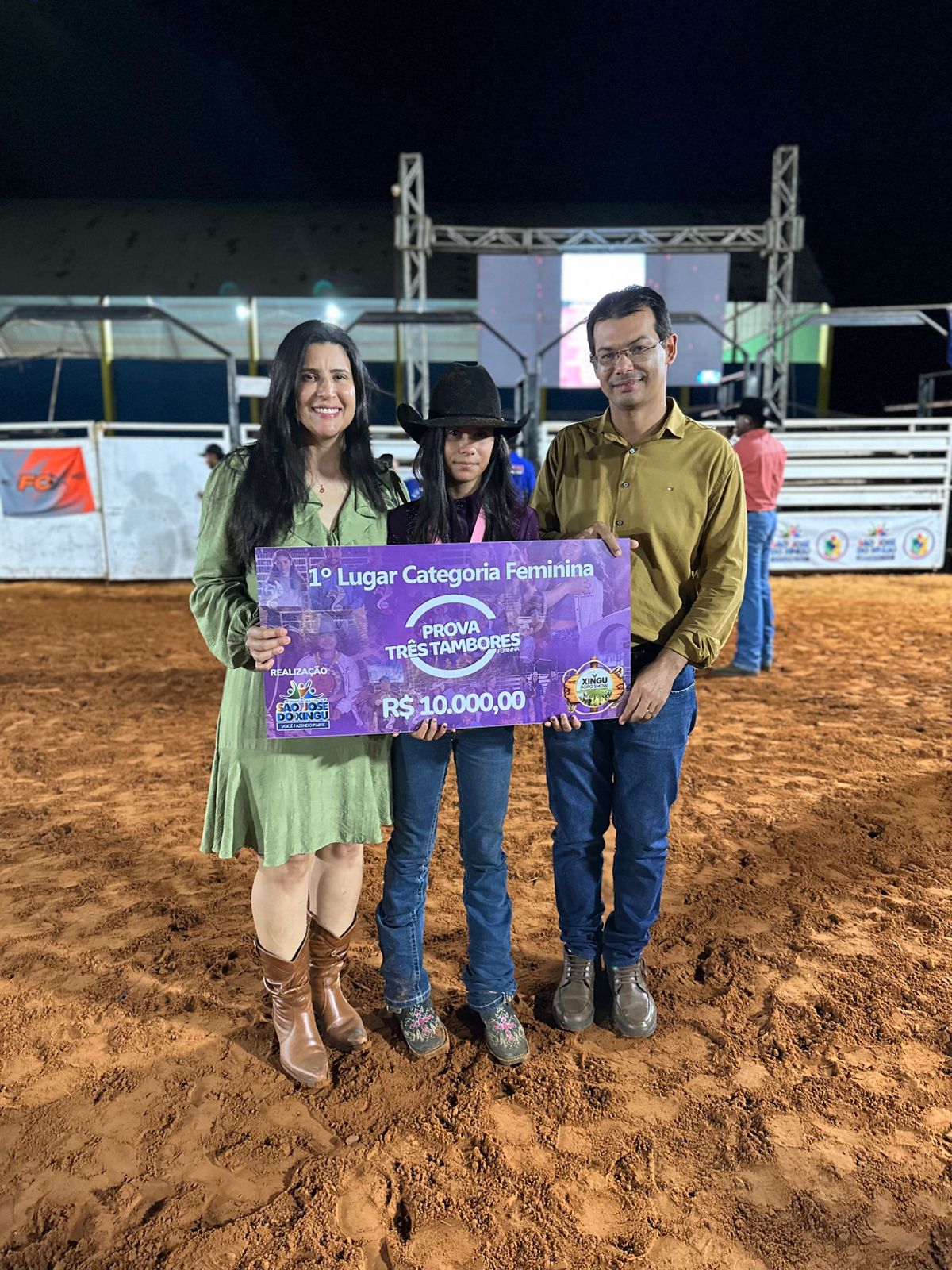 A Prefeitura Municipal de São José do Xingu celebra com orgulho o destaque da competidora Paolla Teodoro, grande campeã da categoria feminina da Prova dos Três Tambores, realizada durante a V Xingu Agroshow. A conquista reafirma o talento e a força dos atletas do município, que vêm se consolidando no cenário regional.